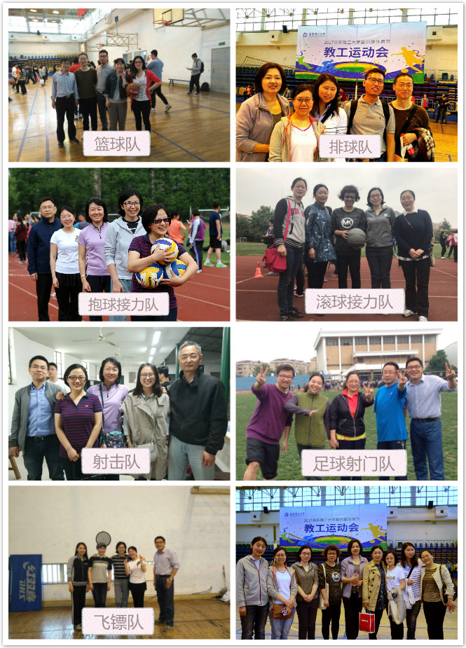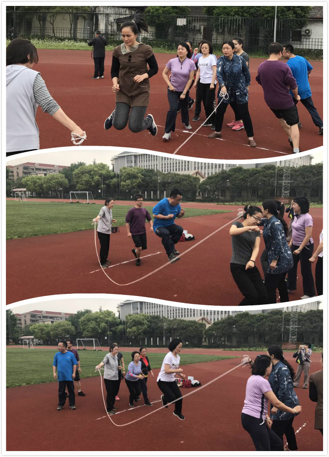 下午,在徐汇校区举行的教工趣味运动会上,外语学院老师参与了跳长绳,踢毽子,抱球接力、足球射门、篮球投篮、排球发球,飞镖,射击、平板支撑等团体项目的比赛。赛场上,老师们团结协作,奋力拼搏,力争上游。