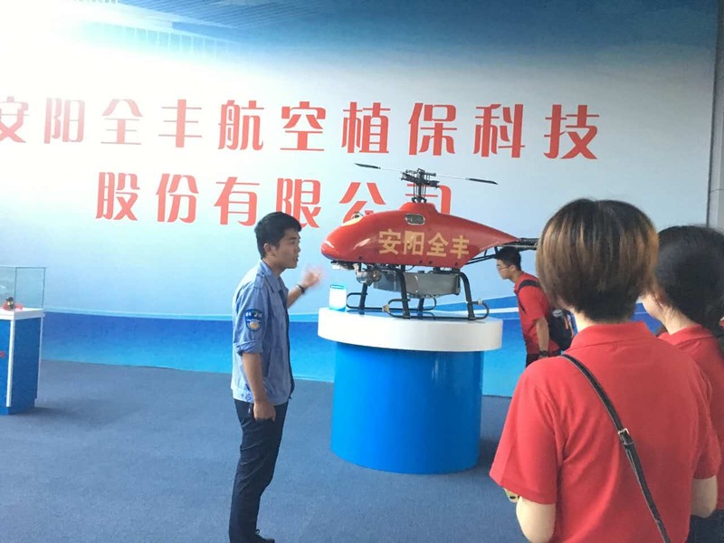 河南安阳全丰航空植保科技有限公司是一家以智能悬浮植保机、专用药剂研发为龙头的现代农业智能装备高新技术企业。在全丰公司,师生们在飞防队大队长的带领下,了解了无人机的构造、优势和前景,并观看了无人机作业。