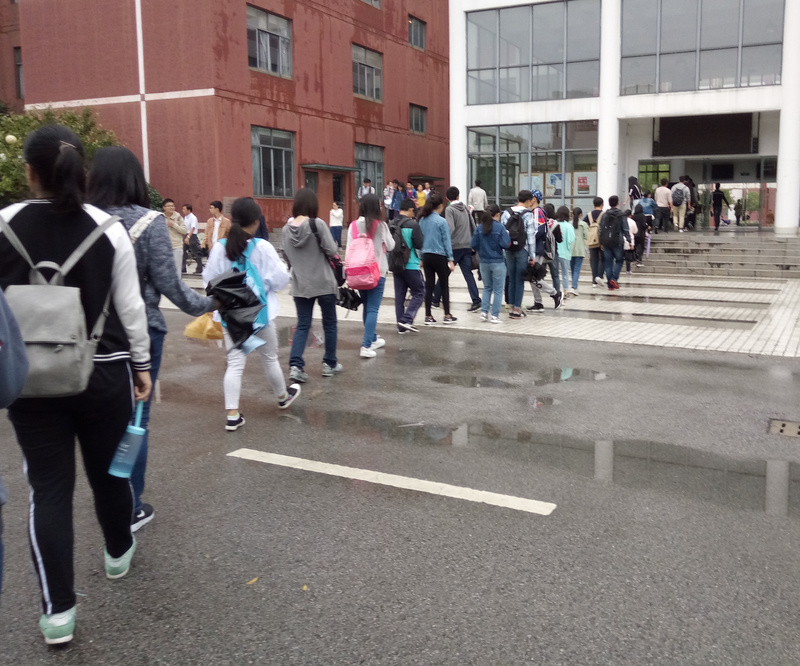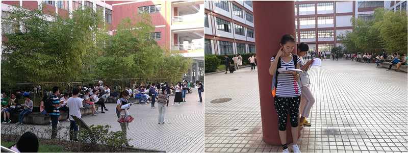 热度和定点晨读一样火爆的是大厅晨读。在这里,学生自选题材、自助朗读。可以说,这里更像一个英语学习自习场所。晨读时间,大厅晨读打卡的队伍往往排得比食堂的队伍都长。打卡在7点开始,不少同学在晨跑之后早早地来到E教,拿出材料声情并茂地大声朗读。在这里,有背单词的,有朗诵课文的,有戴着耳机听英文广播的,大家都用自己的方式学习英语。