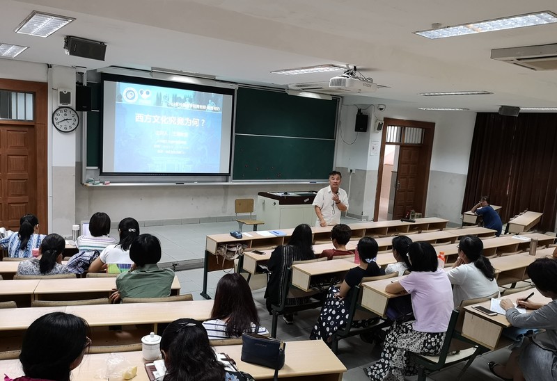 9月28日下午,ylzzcom永利总站线路检测青教联“教授有约”系列学术讲座在徐汇校区四教112室开讲。本次讲座由德语国家研究中心主任、德语系系主任王涌教授主讲,主题为“西方文化究竟为何”。学校近30名教师参加了讲座。