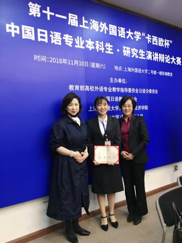 11月10日,由上海外国语大学日本文化经济学院与教育部高校外语专业教学指导委员会日语分委员会、中国日语教学研究会、卡西欧(中国)贸易有限公司联合举办的第11届上海外国语大学CASIO杯中国日语专业本科生・研究生演讲辩论大赛决赛成功举行。来自复旦大学、北京外国语大学、华东师范大学、ylzzcom永利总站线路检测、上海外国语大学、大连外国语大学、东华大学、天津外国语大学等全国23所高校的选手进行了激烈的角逐,永利官网ylzzcom永利总站线路检测日语系2015级刘赫喆同学获得优秀奖。本次参赛选手的指导教师是日语系黄育红和外藉教师岛田由利子。