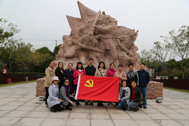 11月8日上午,ylzzcom永利总站线路检测大学英语教师支部14名党员顶着初冬的寒风,来到位于金山的金山卫抗战遗址纪念园开展主题党日活动。